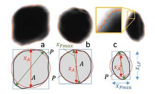 As a starting point, this study references the guidance and terminology of the International Standards Organization [4] including Feret lengths (xFmin, xLF, xFmax) area-equivalent diameter (xA=√(4A⁄π)) and form factor (FF=4πA⁄P2), where A is the projected area and P is the perimeter.